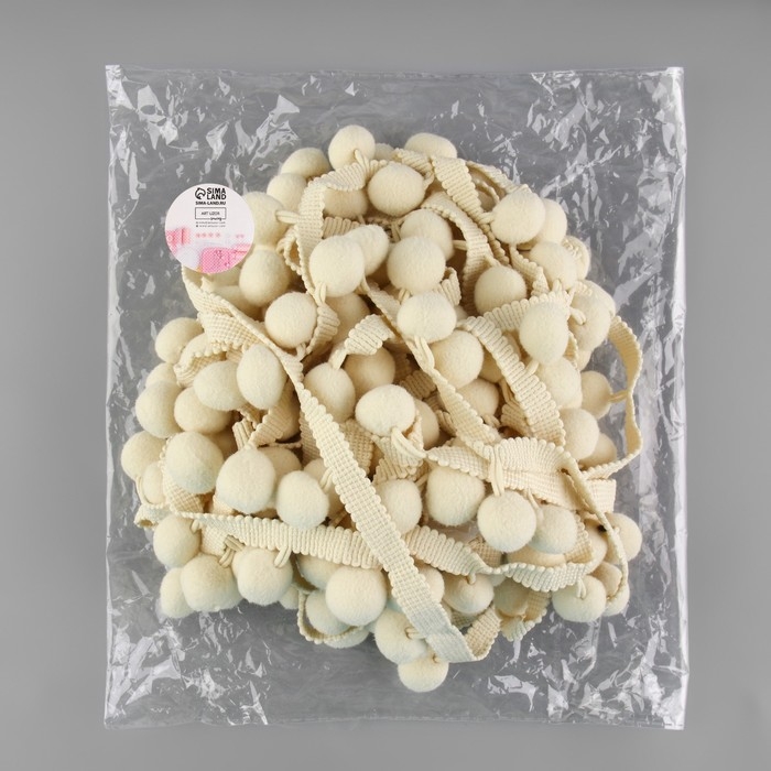 Тесьма декоративная с помпонами, 35 ± 5 мм, 9,1 ± 0,5 м, цвет бежевый
