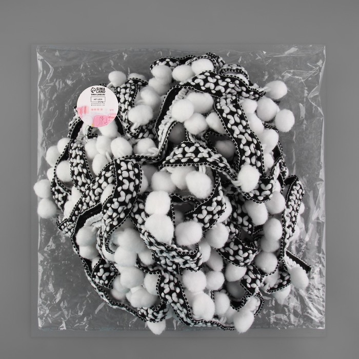 Тесьма декоративная с помпонами, 15 мм, 8 ± 0,5 м, цвет чёрный/белый
