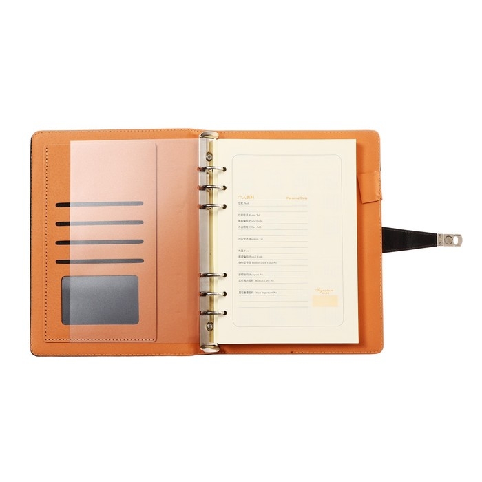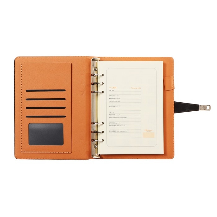 Органайзер на кольцах, формат А5, 90 листов, линия, с хлястиком, обложка кожзам МИКС