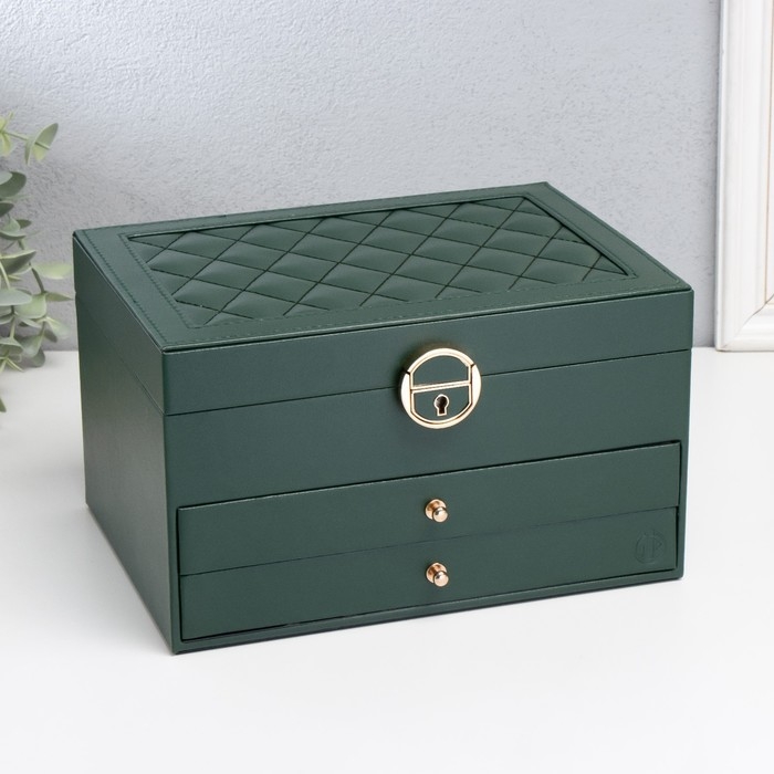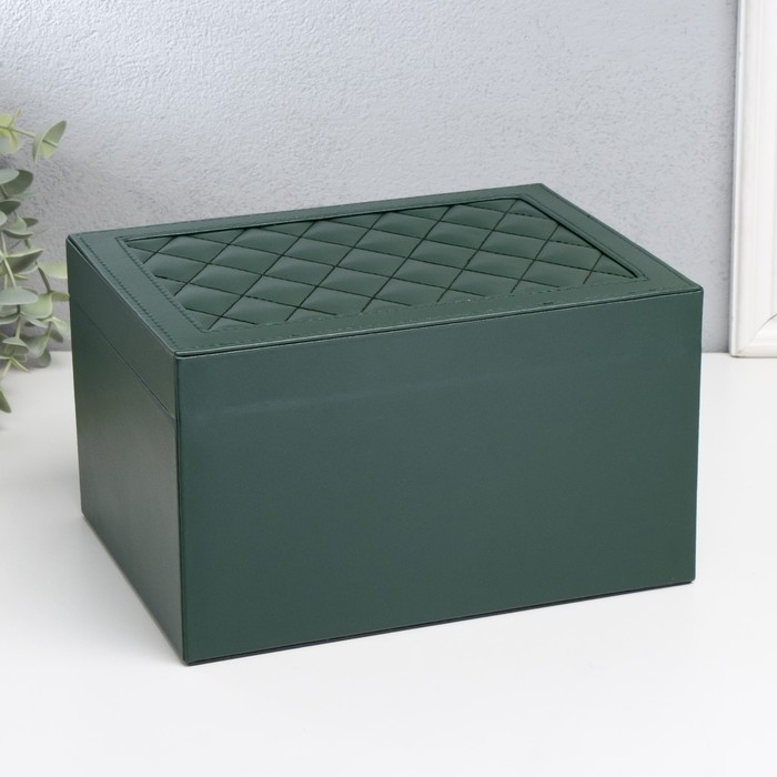 Шкатулка кожзам для украшений "Стёганая с рамкой" зелёная 23х17х13,5 см