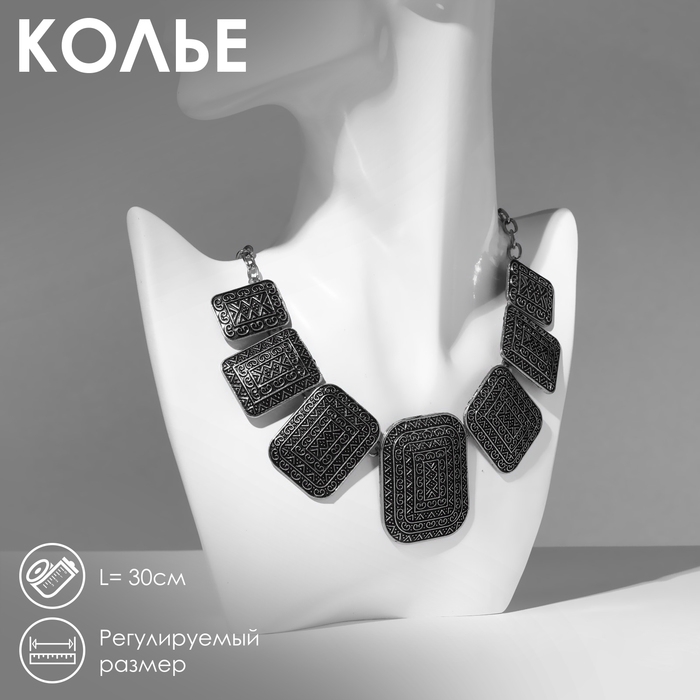 Колье «Индия» прямоугольники, цвет чернёное серебро, 30 см