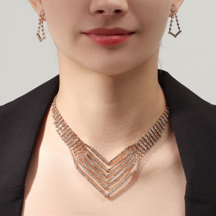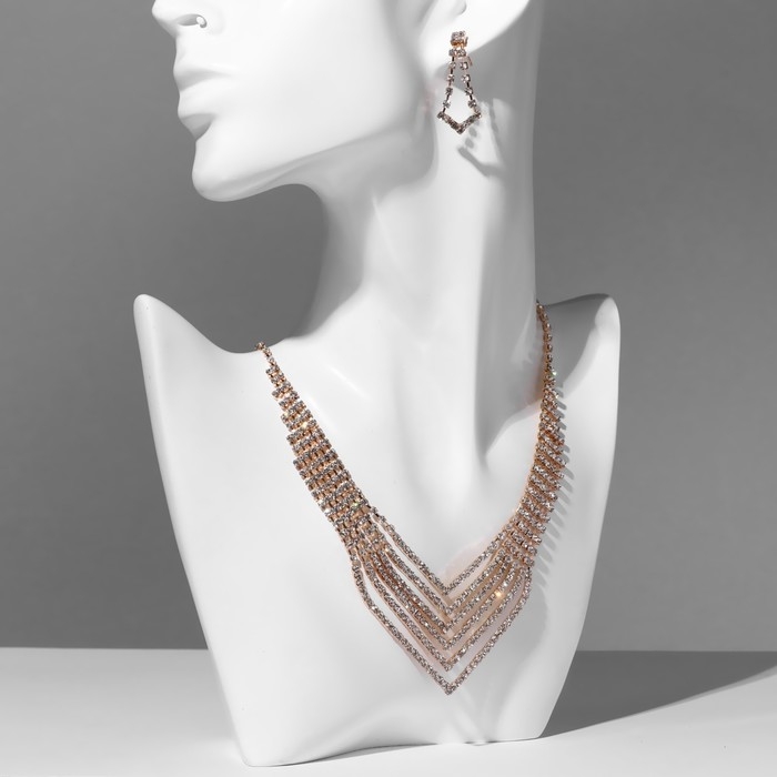 Набор 2 предмета: серьги, колье «Лёд», 6 рядов, цвет белый в золоте, 34 см