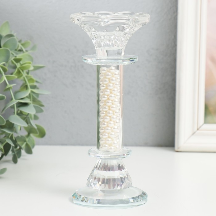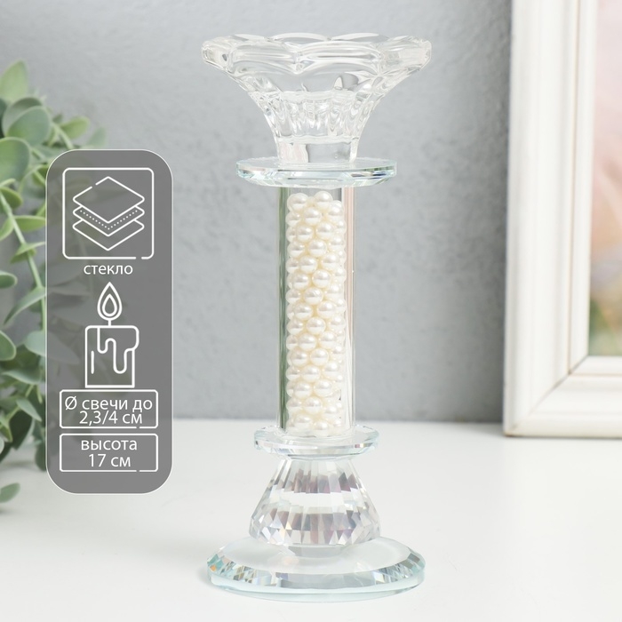 Подсвечник стекло на 1 свечу "Чаша на ножке с бусинами" прозрачный d=2,3 и 4 см 7х7х17 см