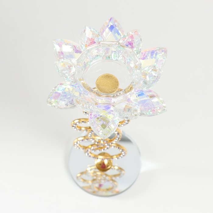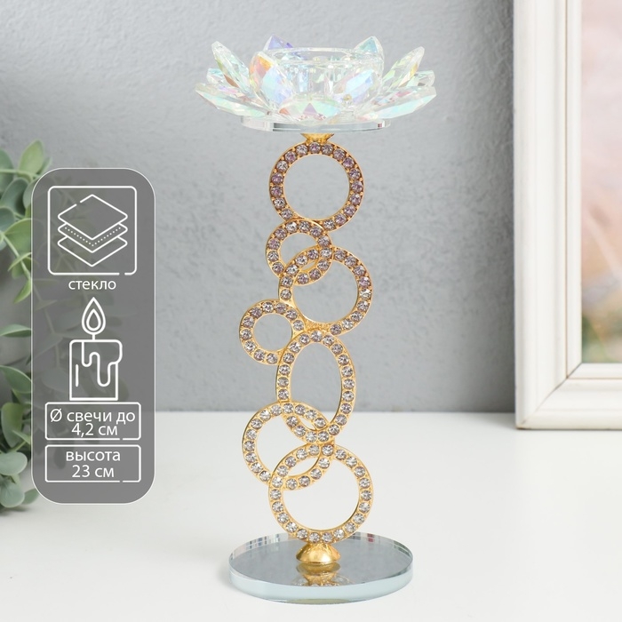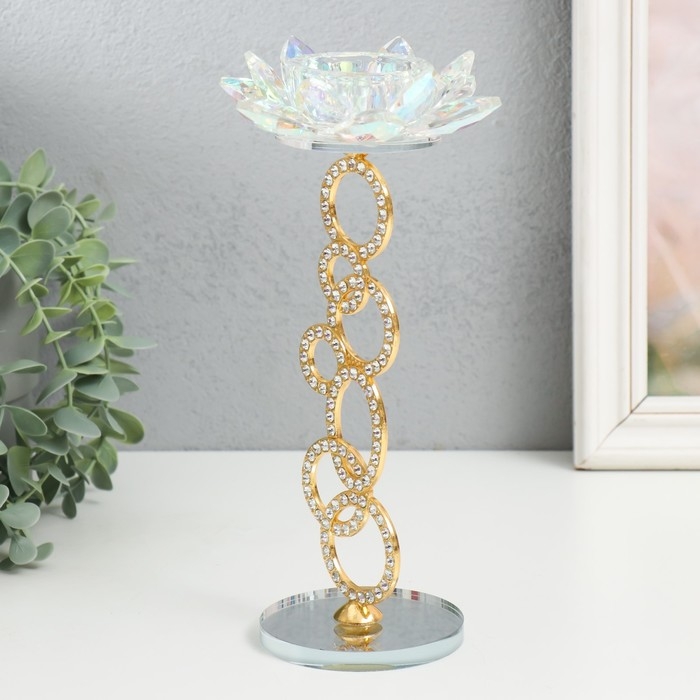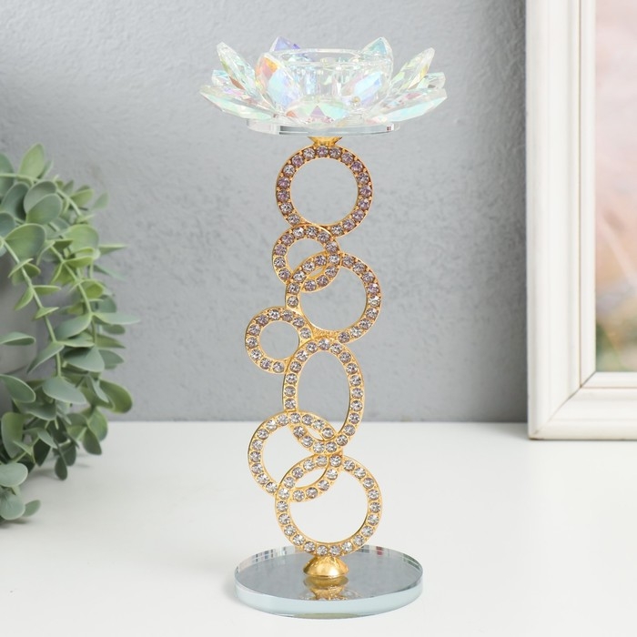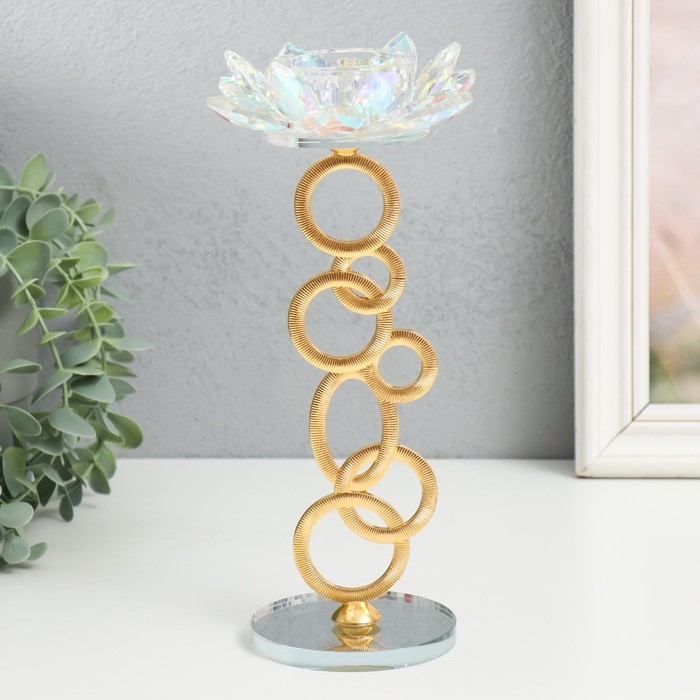 Подсвечник стекло на 1 свечу "Лотос на кольцах" золото d=4,2 см 11х11х23 см