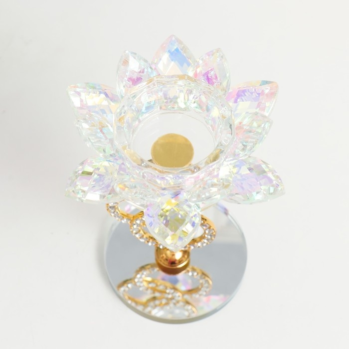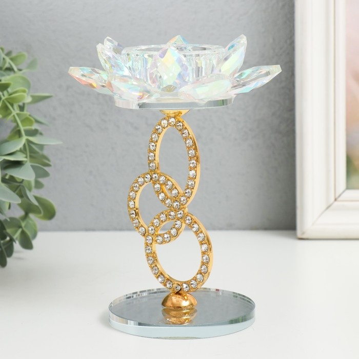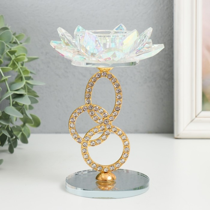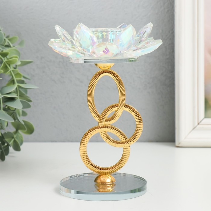 Подсвечник стекло на 1 свечу "Лотос на кольцах" золото d=4,2 см 6,5х6,5х15 см