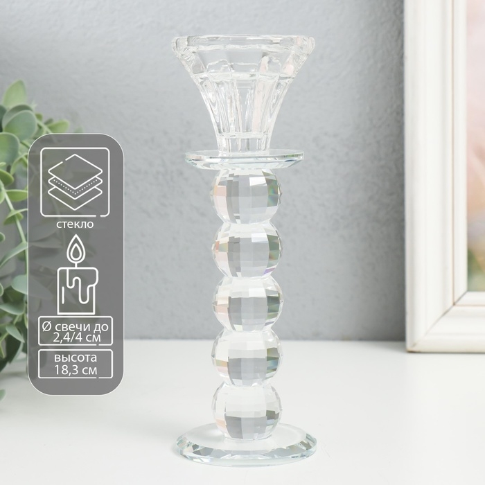 Подсвечник стекло на 1 свечу "Бутон на 5 шариках" прозрачный d=2,3 и 4 см 6х6х18,3 см