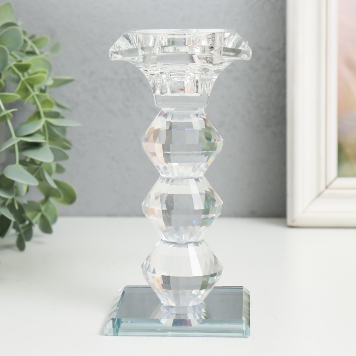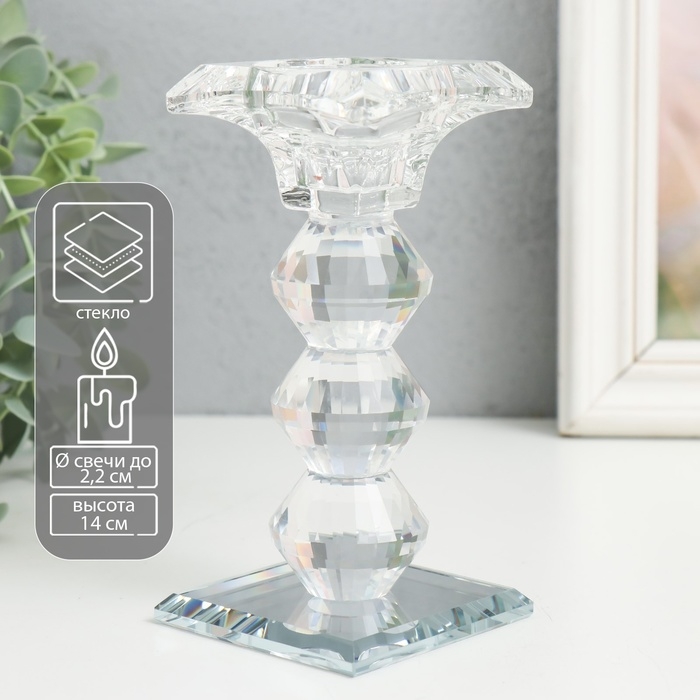 Подсвечник стекло на 1 свечу "Бефана с 3 подъемами" прозрачный d=2,2 и 3,5 см 6х6х14 см