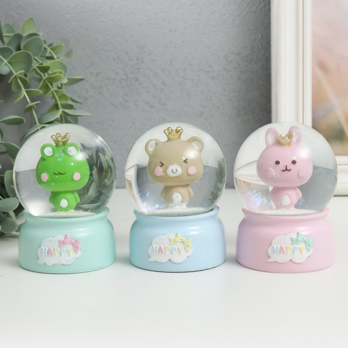 Сувенир полистоун водяной шар свет "Счастливая зверюшка" МИКС 6х6х8,5 см
