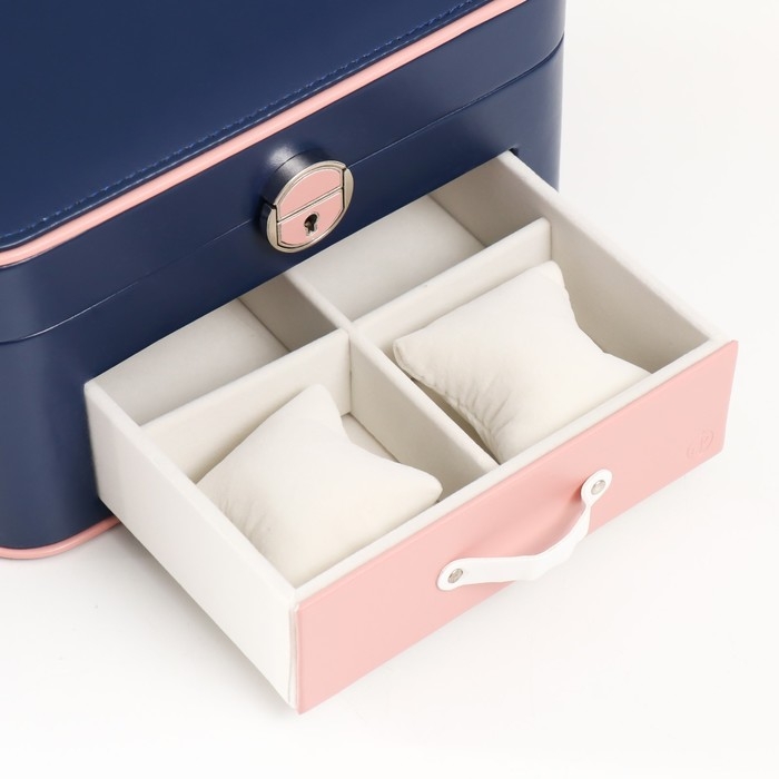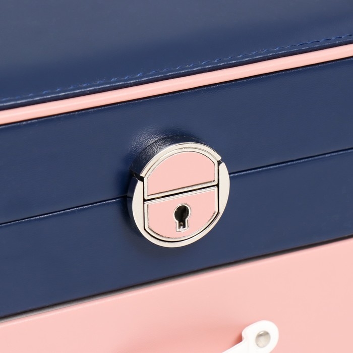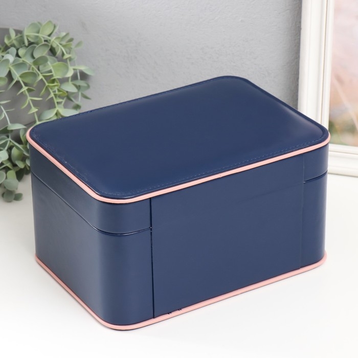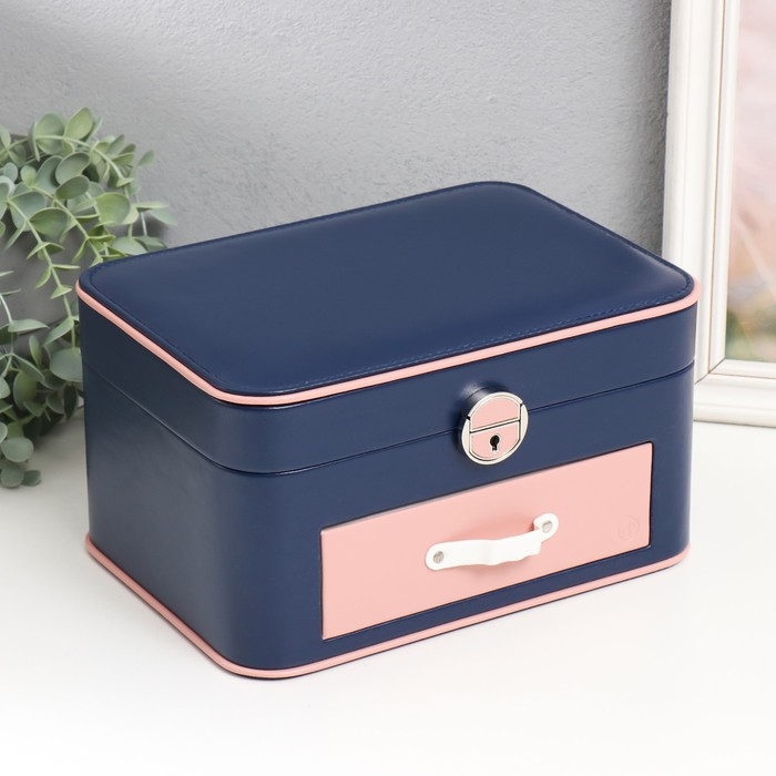 Шкатулка кожзам для украшений "Шейла" синяя с розовым 25,5х18,5х14 см