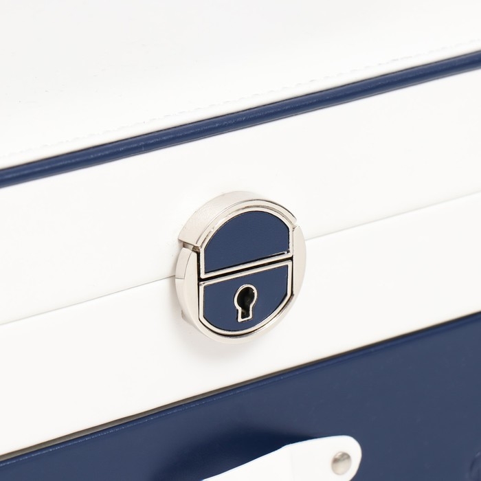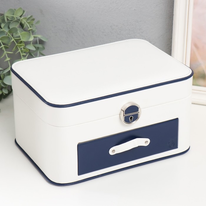 Шкатулка кожзам для украшений "Шейла" белая с синим 25,5х18,5х14 см