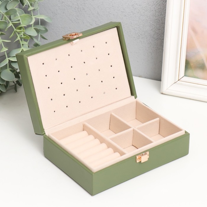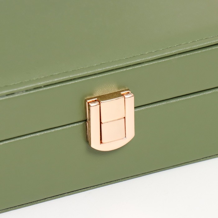 Шкатулка кожзам для украшений "Матовая гладь. Прямоугольная" зелёная 16х11,5х5,5 см