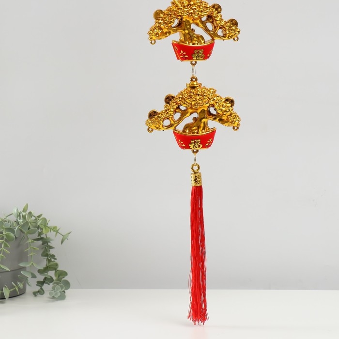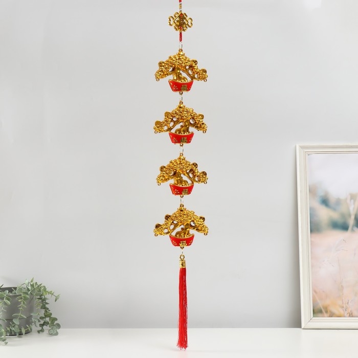 Подвеска пластик, текстиль "Четыре бонсая - На счастье" 15х100 см