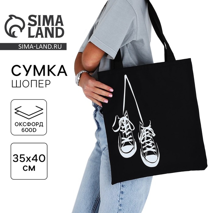 Сумка шопер «Кеды», 35х0.5х40 см, отд без молнии, без подклада, чёрная