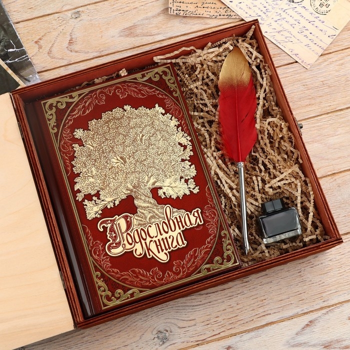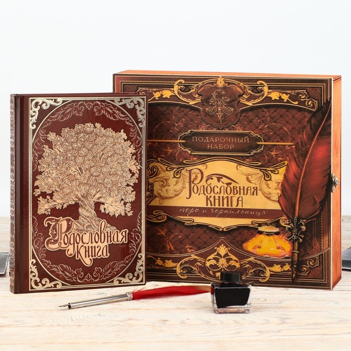 Семейные традиции — самое ценное, что есть в жизни человека. Кто из нас не хочет оставить память о себе и своих близких будущим поколениям? Ведь история может быть поводом для гордости! Для создания летописи вам пригодится наш подарочный набор с родословной книгой, пером и чернильницей.