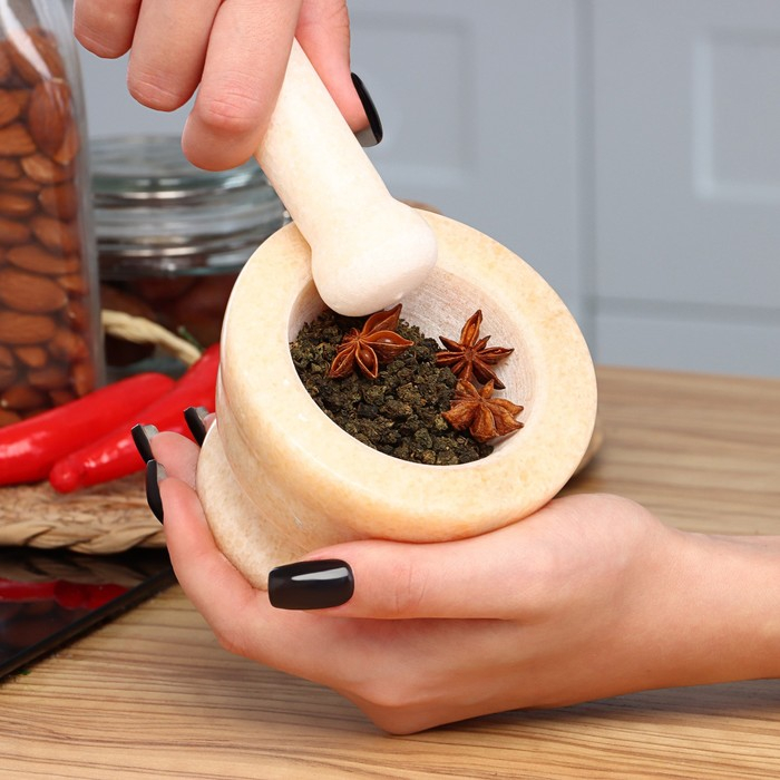 Ступка с пестиком большая, 130 мл, 10см, песочный