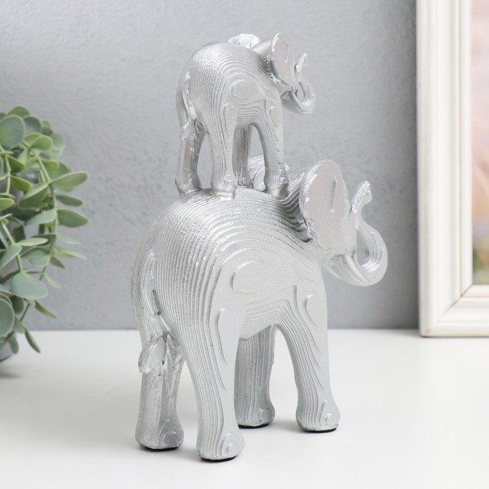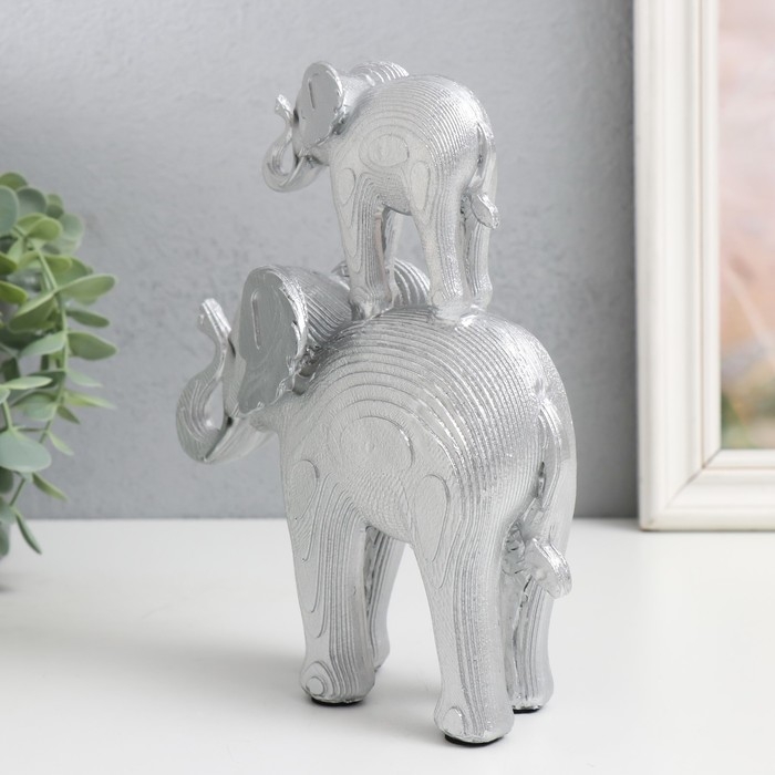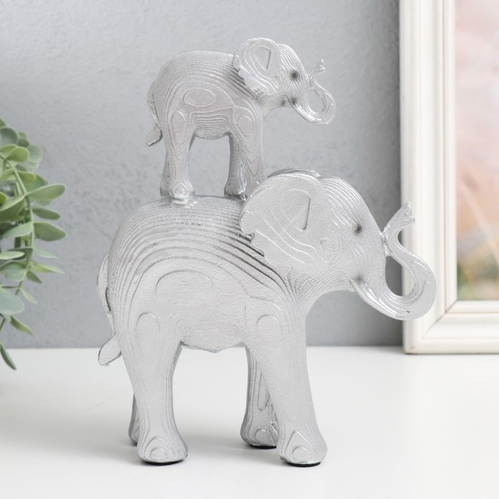 Сувенир полистоун "Серебристый слон со слонёнком на спине - узор листья" 16х7х19,5 см