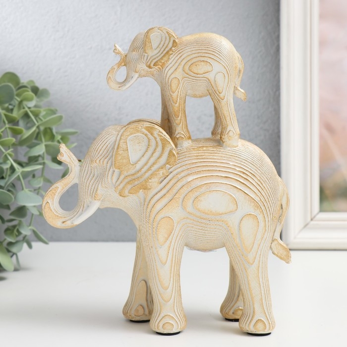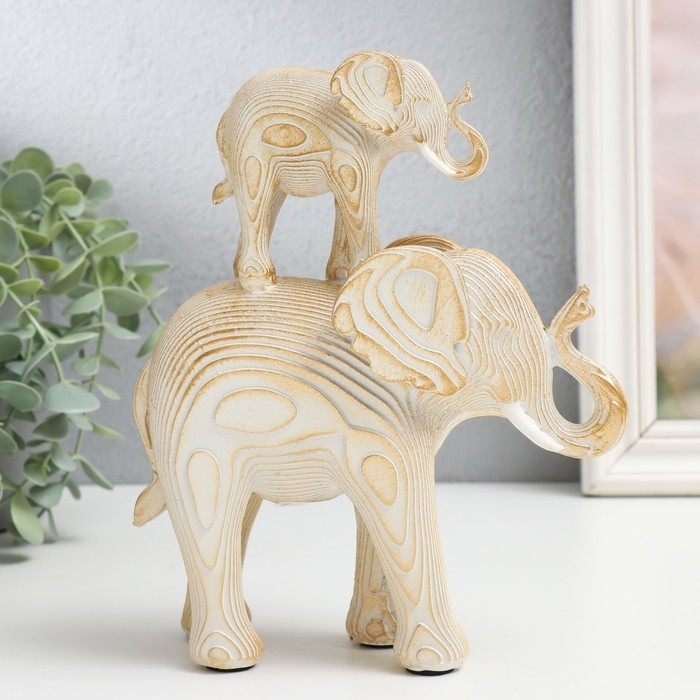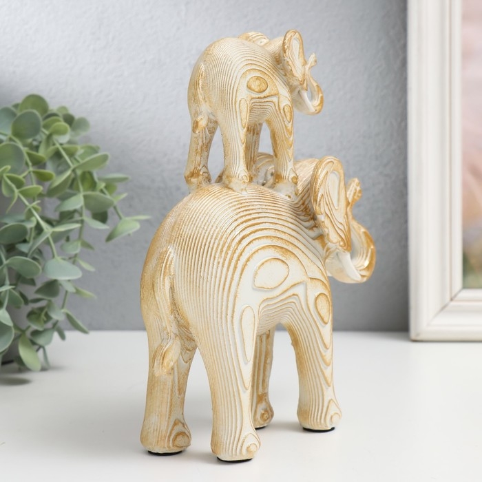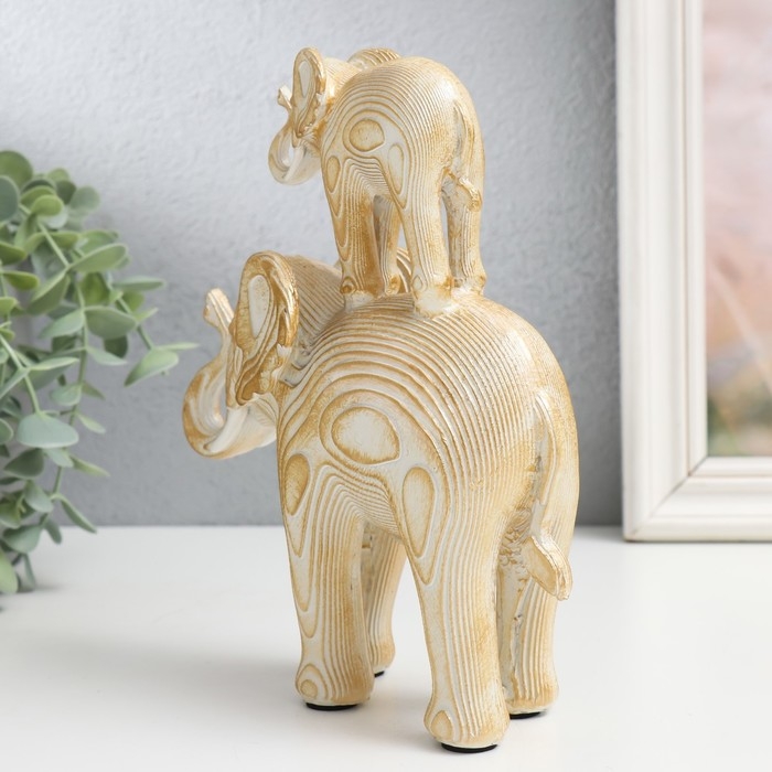 Сувенир полистоун "Белый слон со слонёнком на спине, с золотом - слои" 16х7х19,5 см
