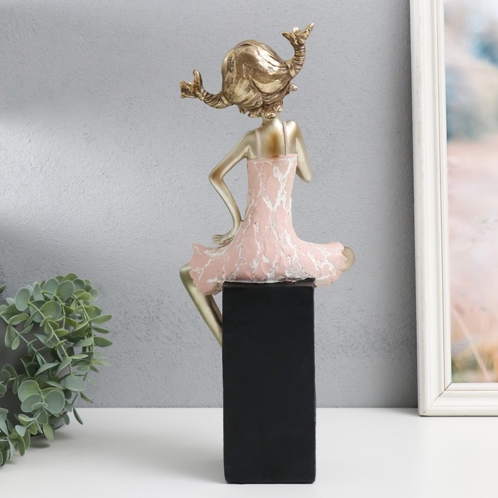 Сувенир полистоун "Девочка на кубе, с косичками" бело-золотой 15х10х37 см