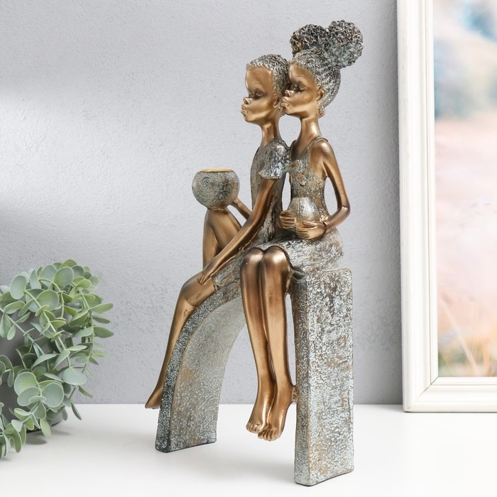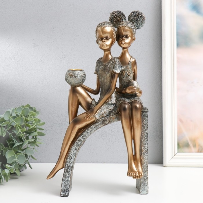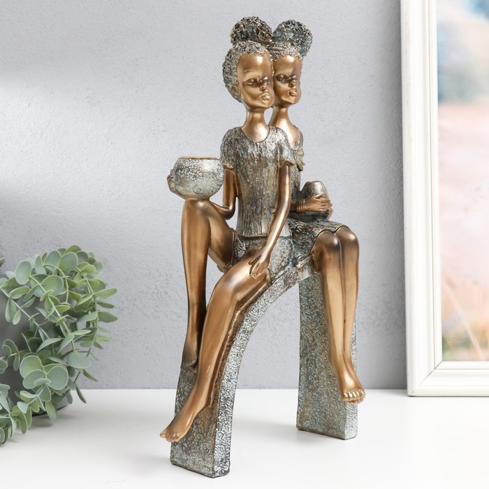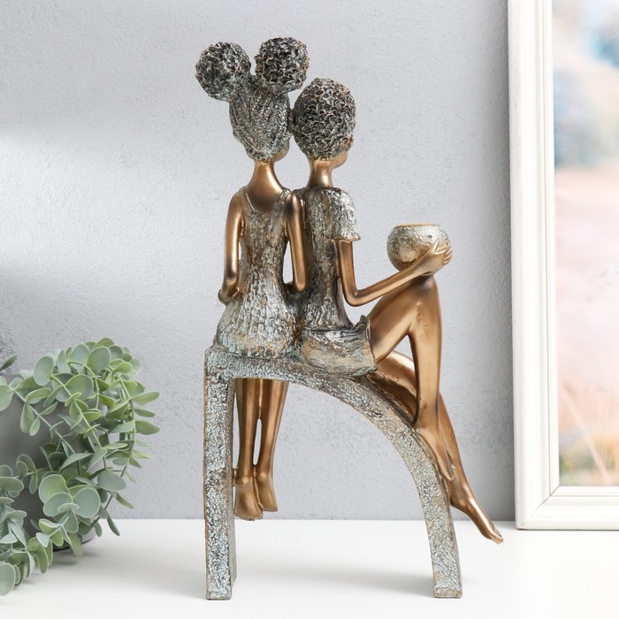 Сувенир полистоун подсвечник "Дети на горке, с кувшинами" под бронзу 19,5х10х35 см