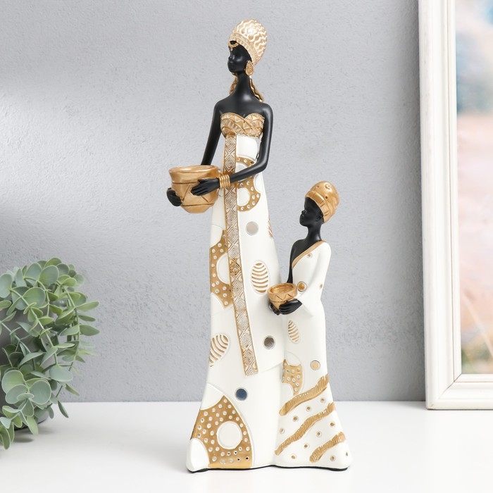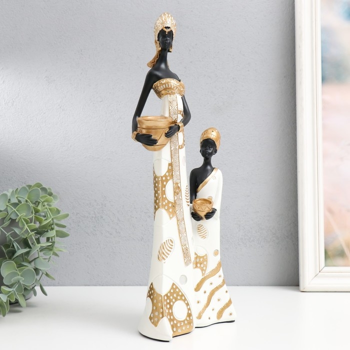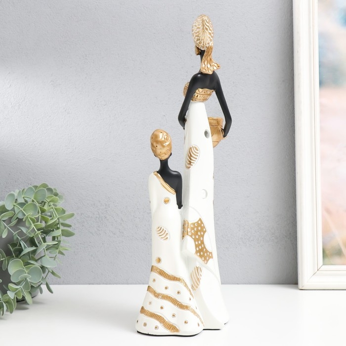 Сувенир полистоун "Африка - Мать и дочь, с глиняной посудой" бело-золотой 15х8,5х36,5 см