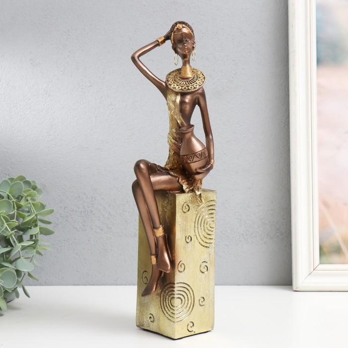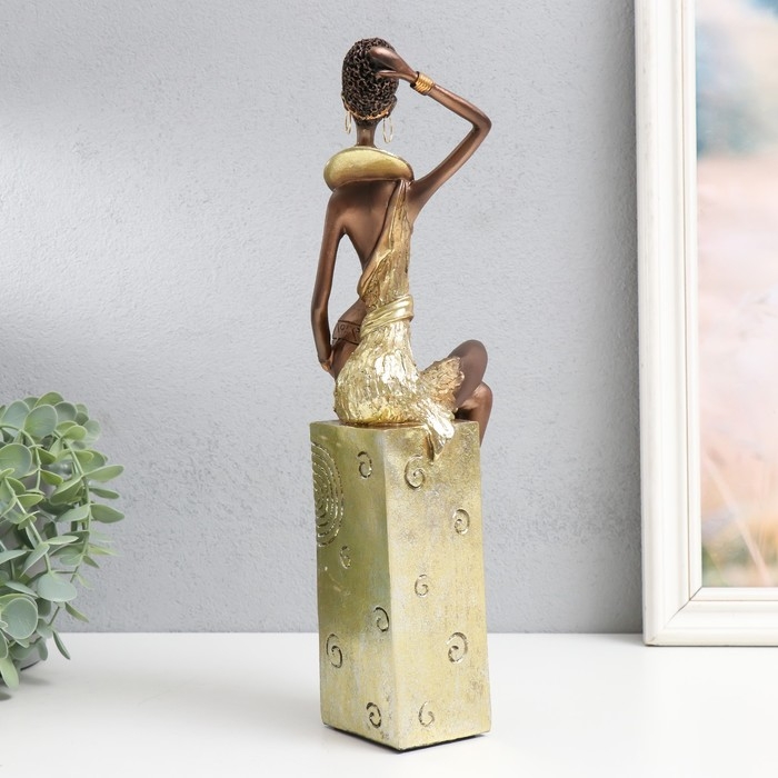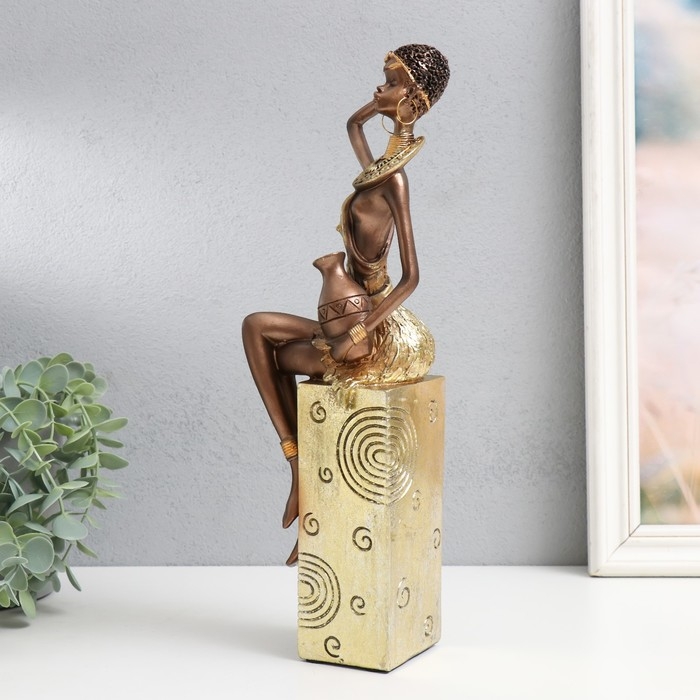 Сувенир полистоун "Африканка с кувшином, на подставке" золото узор - круги 10,5х8х33,5 см