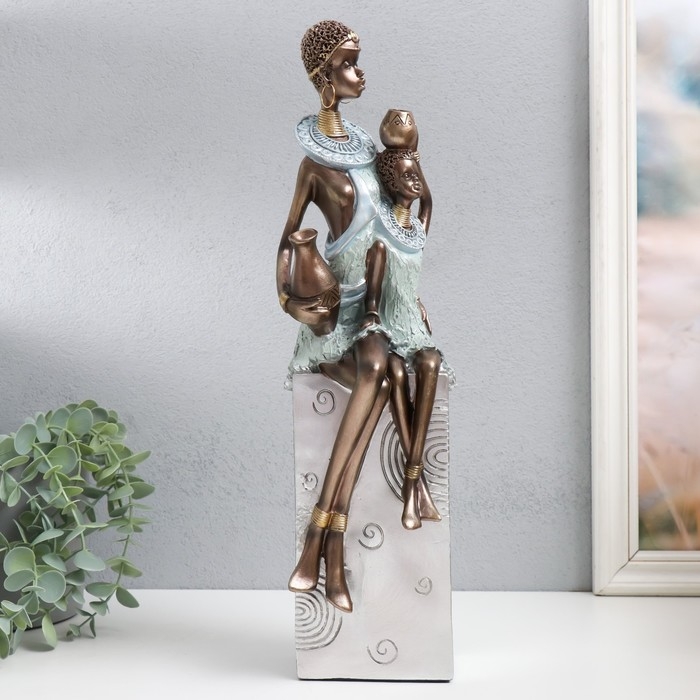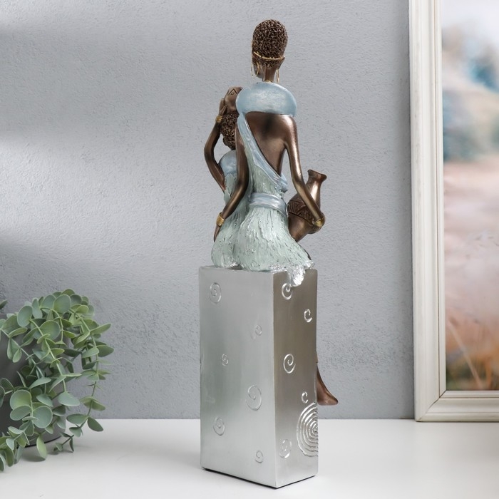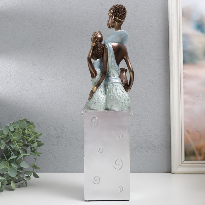 Сувенир полистоун "Африка - Мать и ребёнок" серебро 11,5х12х41 см