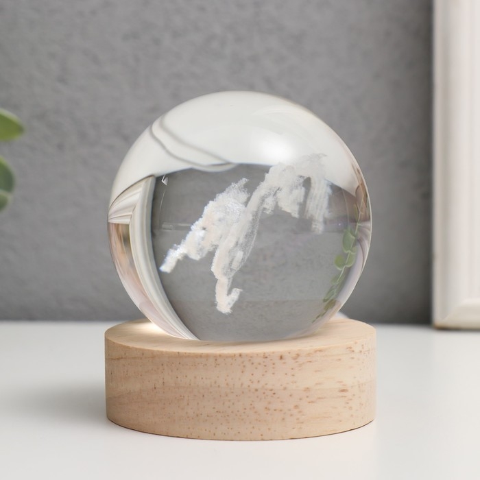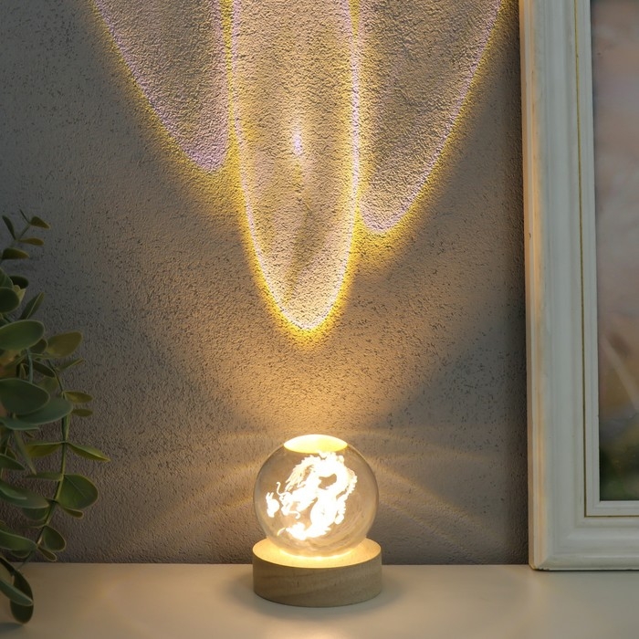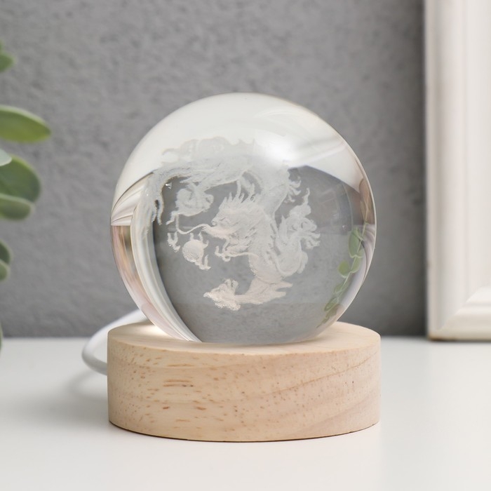 Сувенир стекло подсветка "Дракон" d=6 см подставка дерево, USB 6,5х6,5х7,5 см