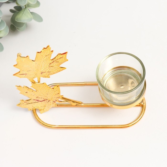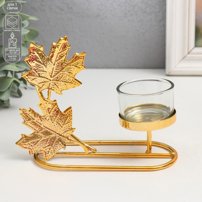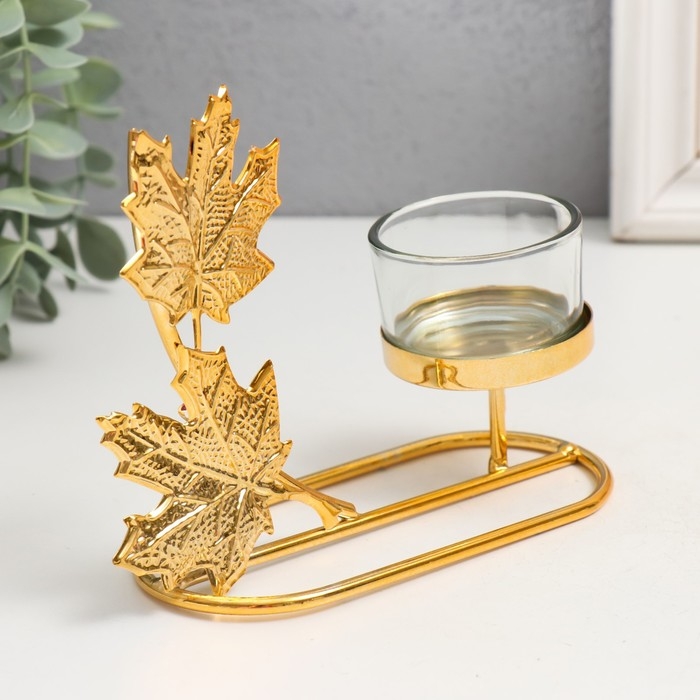 Подсвечник металл на 1 свечу "Кленовые листья" d=4,5 см золото 5,8х13х13 см