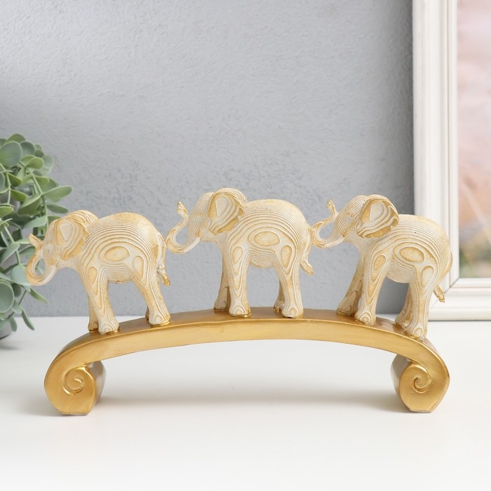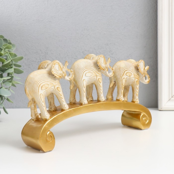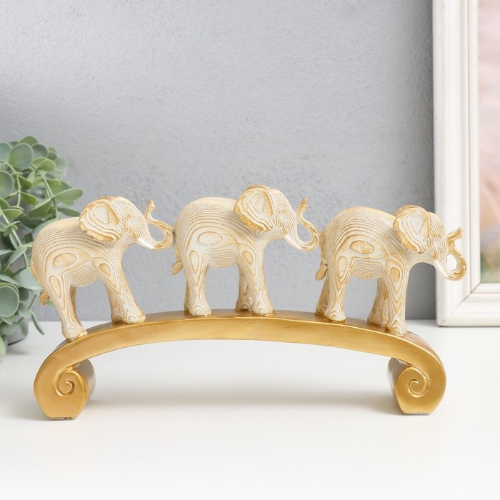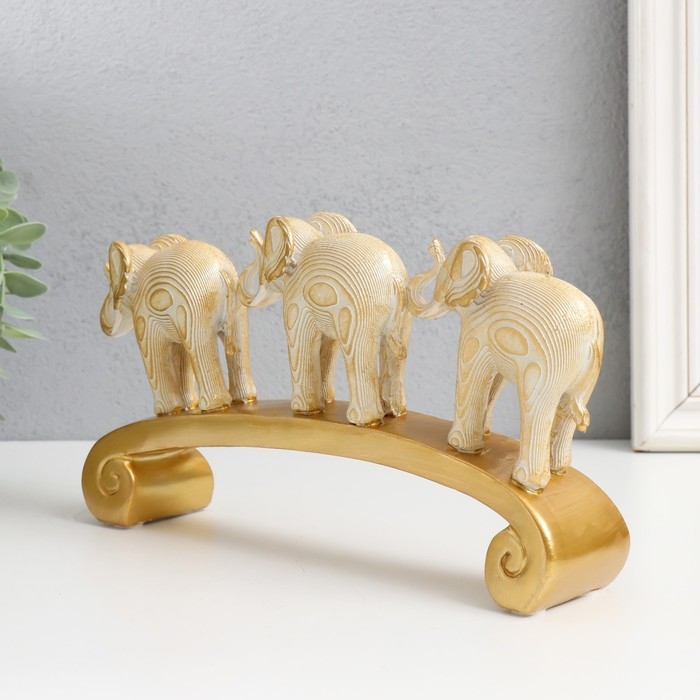 Сувенир полистоун "Три белых слона на дуге, с золотом - слои" 26х5,5х13 см