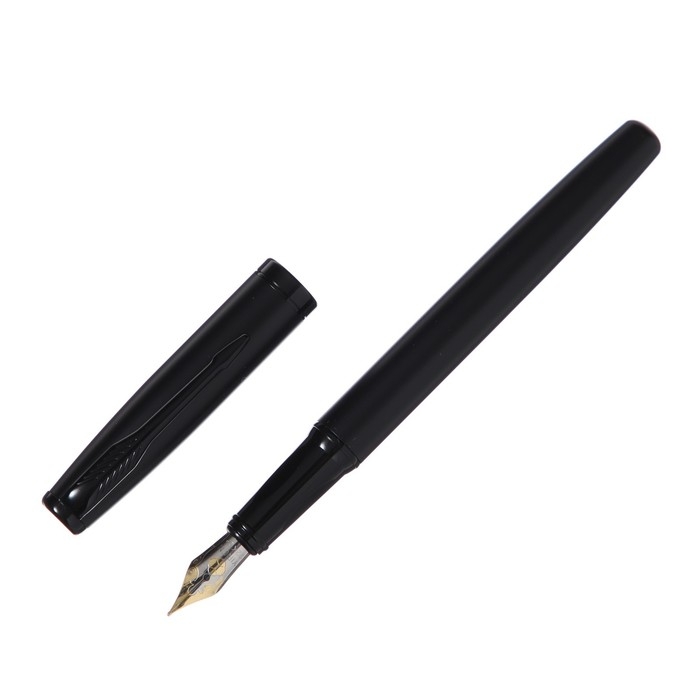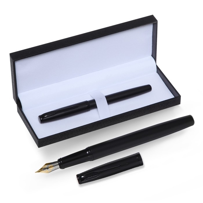 Ручка подарочная перьевая в кожзам футляре, корпус матовый черный
