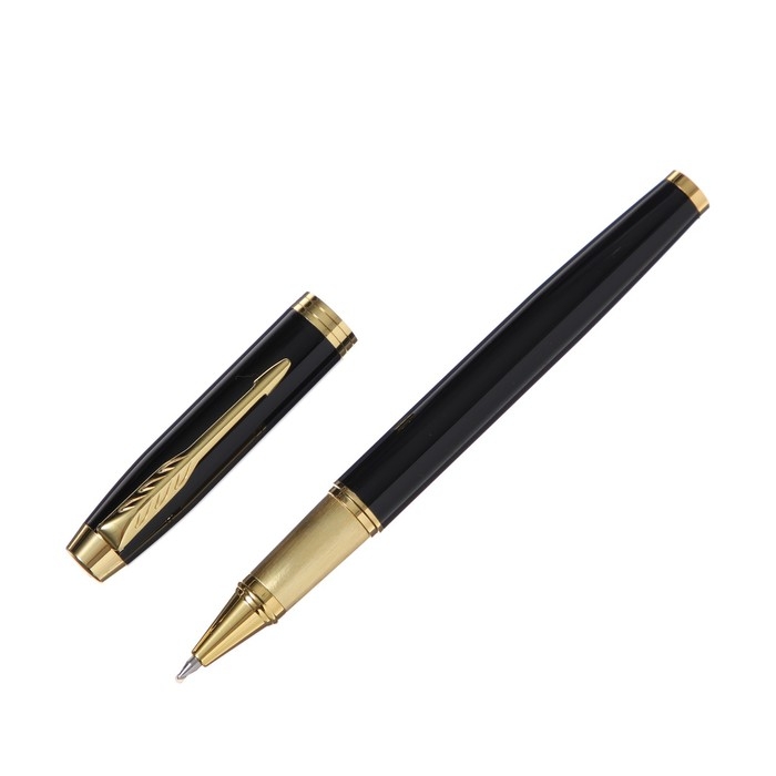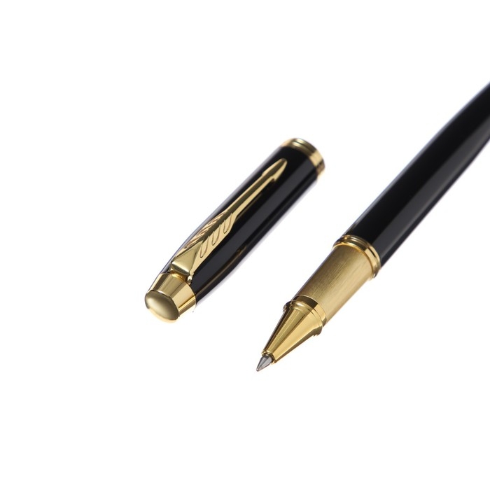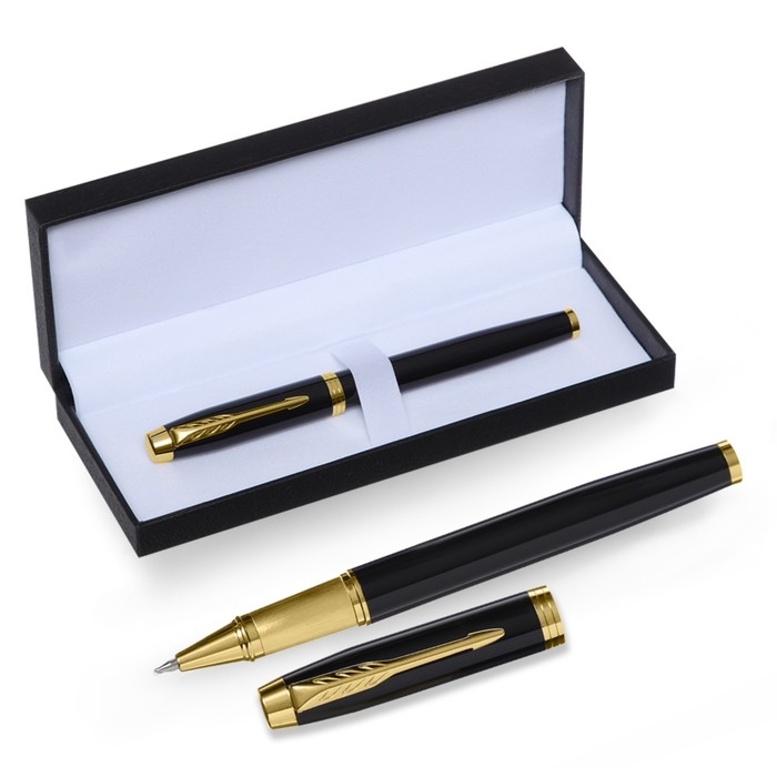 Ручка подарочная роллер, в кожзам футляре, корпус черный, золото