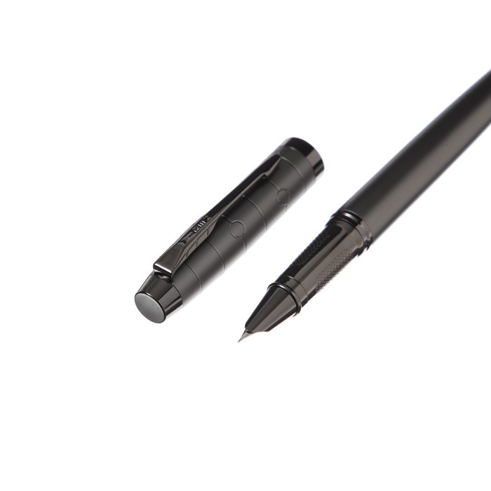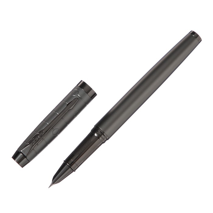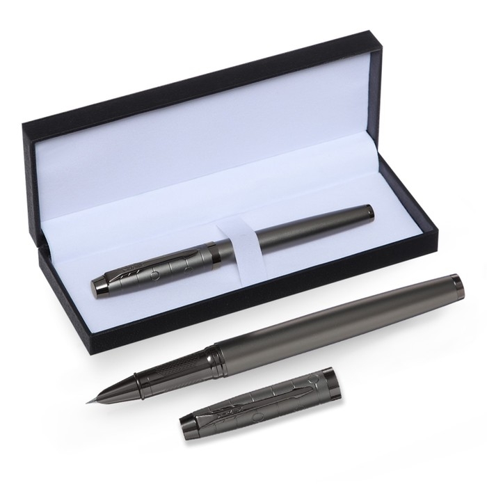 Ручка подарочная перьевая, в кожзам футляре, корпус темно-серый