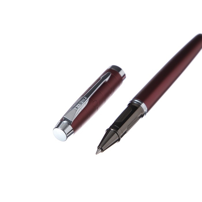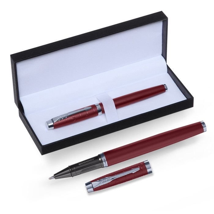 Ручка подарочная роллер, в кожзам футляре, корпус бордо, серебро