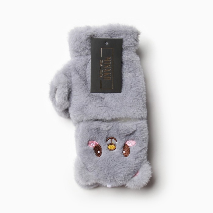 Варежки подростковые MINAKU Мишка 24 см цвет серый