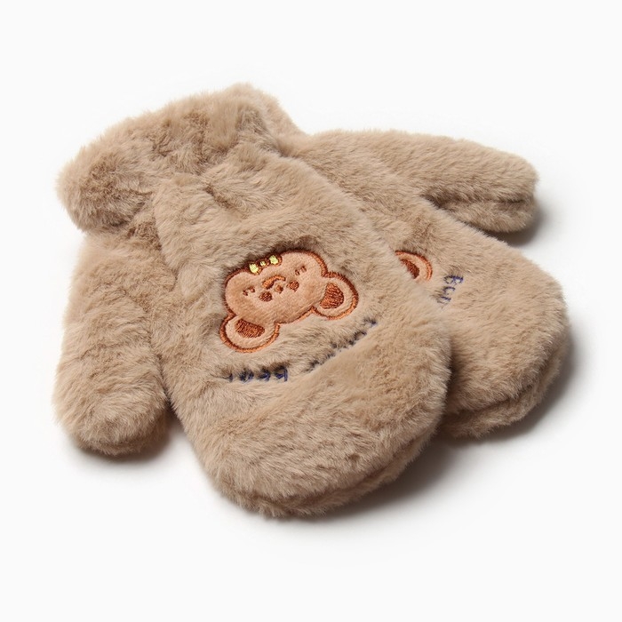 Варежки подростковые MINAKU Мишка вышивка 24 см цвет коричневый