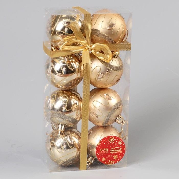 Набор шаров пластик d-5,5 см, 8 шт "Карнавальная ночь" золото