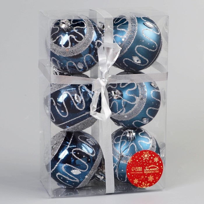 Набор шаров пластик d-7 см, 6 шт "Карнавальная ночь" синий
