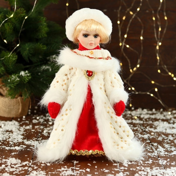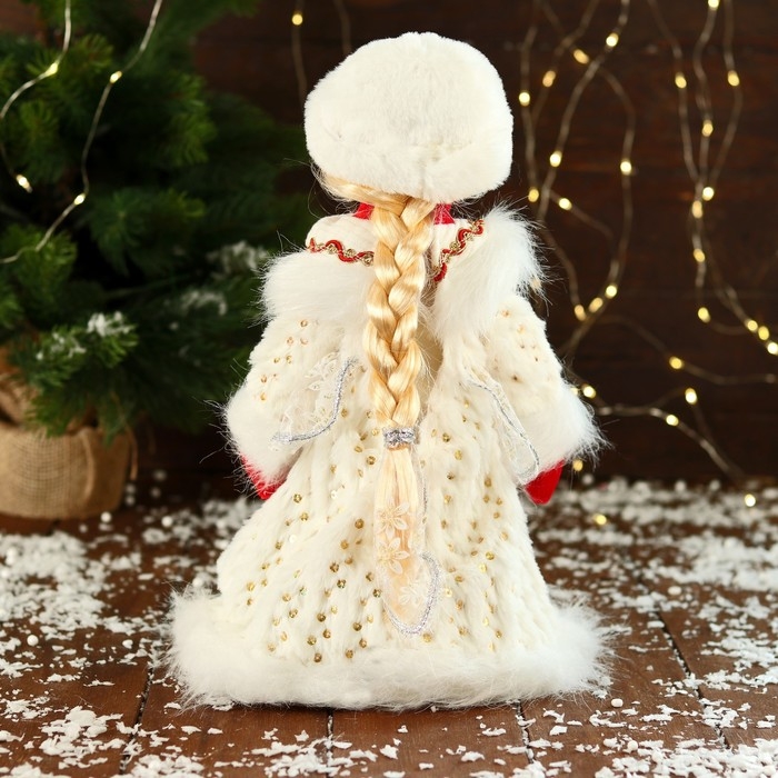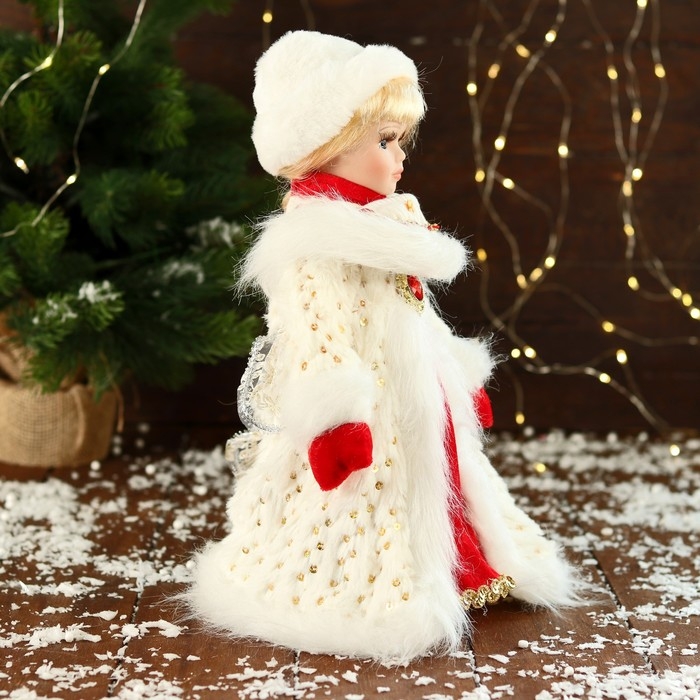 Снегурочка "В текстурной шубке" 32 см, белый