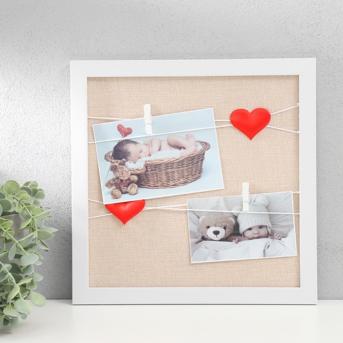 Фоторамка пластик на 2 фото "Любовное послание" с прищепками, белый 30х30 см