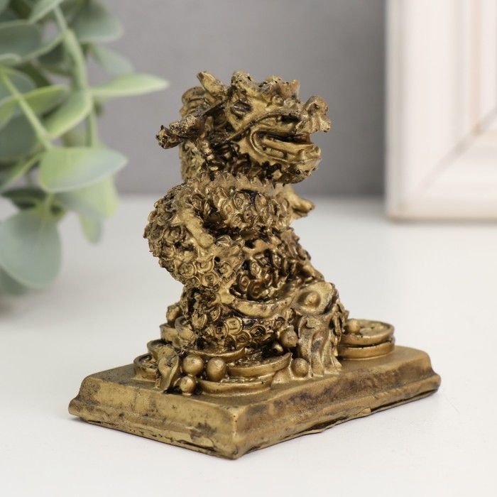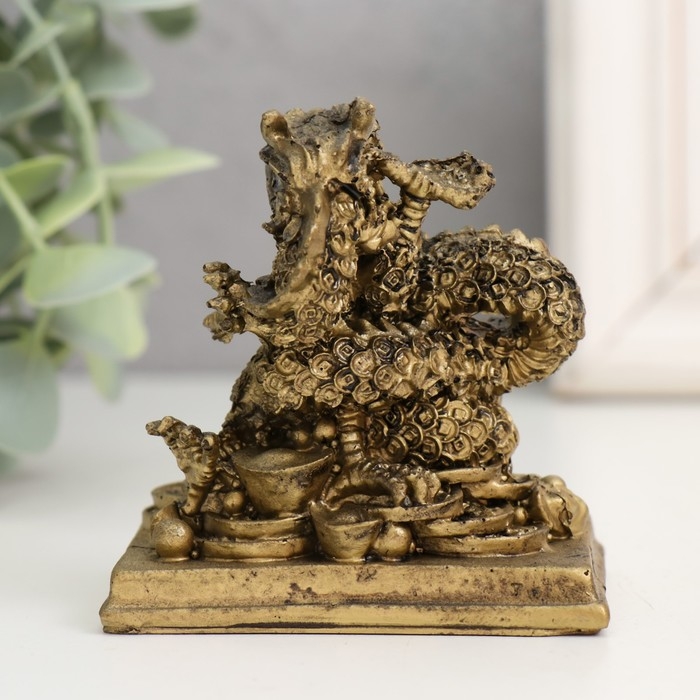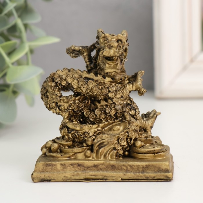 Нэцкэ полистоун под бронзу "Дракон. Денежная активация" 4,7х7х7,5 см