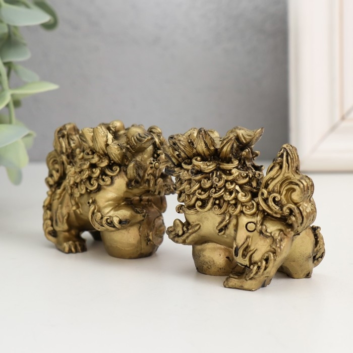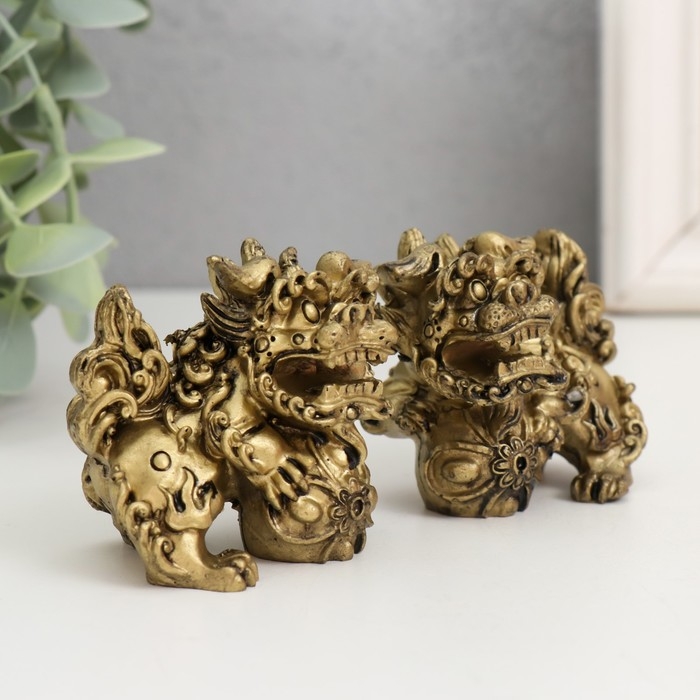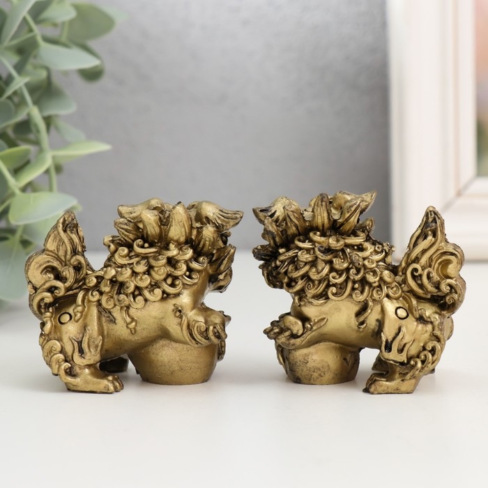 Нэцкэ полистоун набор 2 шт "Небесные львы Будды" 4х6х5 см