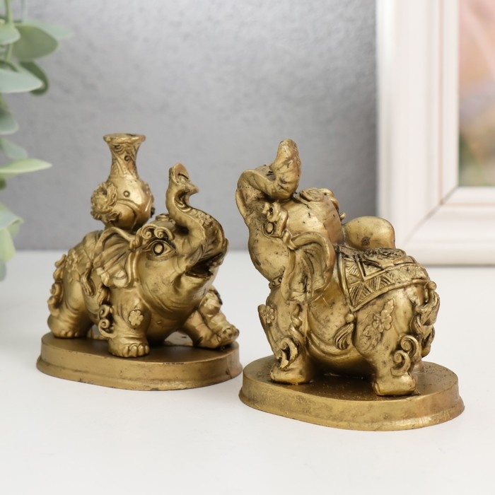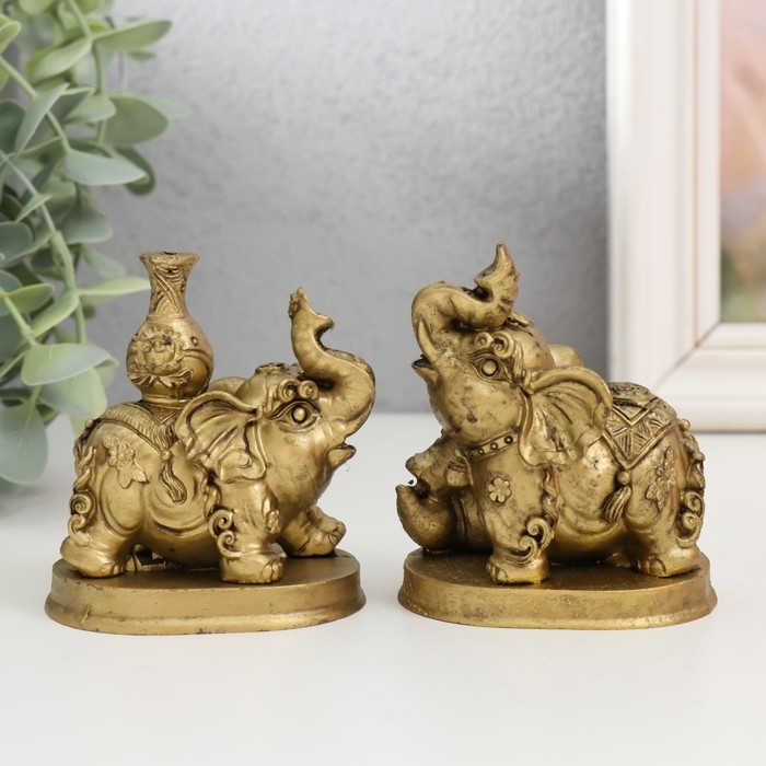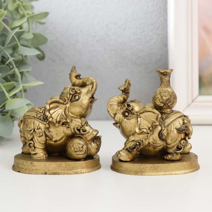 Нэцкэ полистоун набор 2 шт "Слоны с кувшином и мячом" 6,2х7х7,5 см