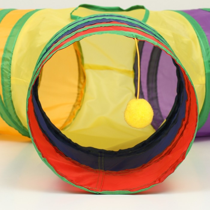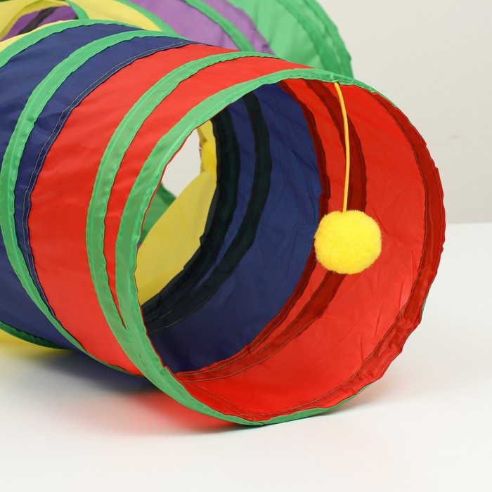 Туннель для кошек с игрушкой, 120 х 25 см, разноцветный