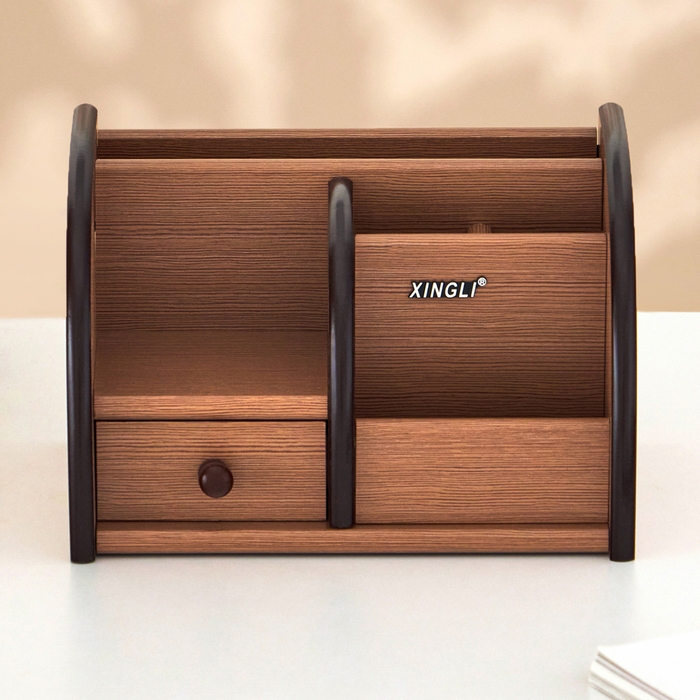 Органайзер 5 секций, 1 выдвижной ящик, серия Ясень шимо темный с кантом темным, 14*21см