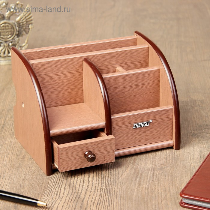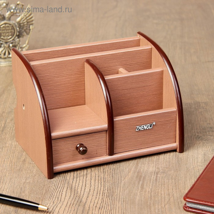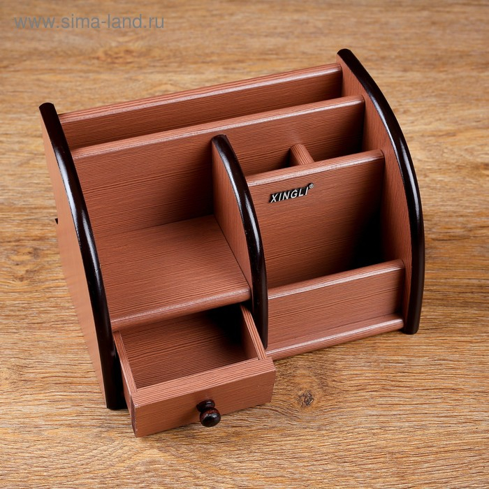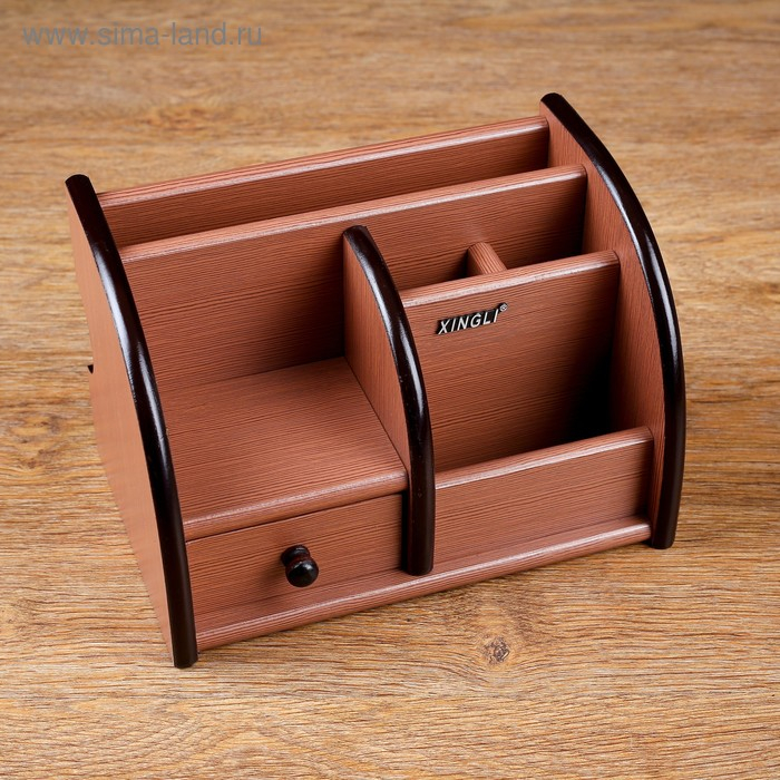Органайзер 5 секций, 1 выдвижной ящик, серия Ясень шимо темный с кантом темным, 14*21см