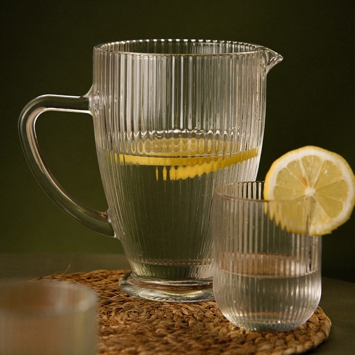 - Универсальность: Кувшин идеально подходит для подачи различных напитков — от чистой воды до освежающих коктейлей.