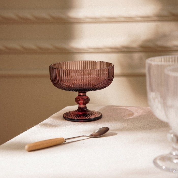 - Уникальный дизайн: Нежный розовый цвет и рельефная текстура делают креманку настоящим украшением стола, подходящим для романтических ужинов и праздничных мероприятий.