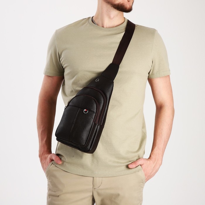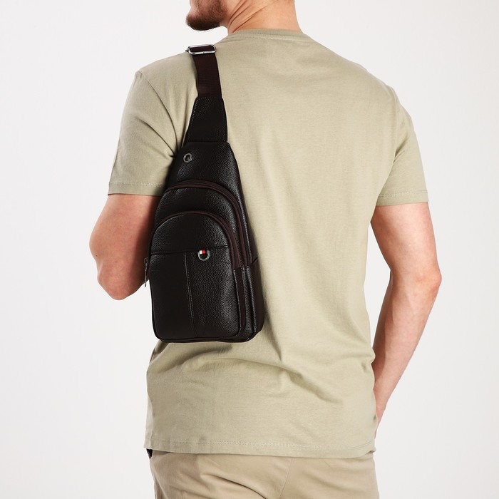 Сумка-слинг мужская, искусственная кожа, цвет коричневый