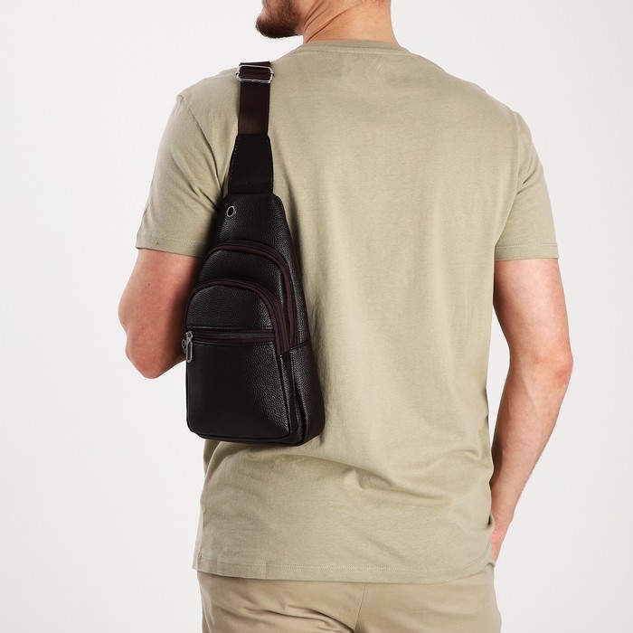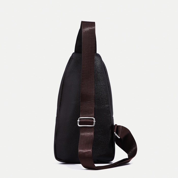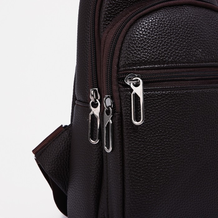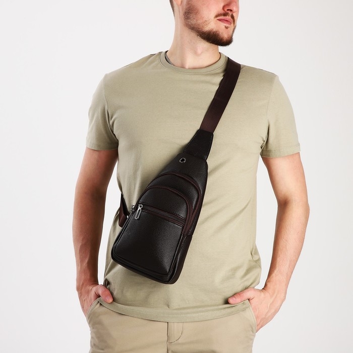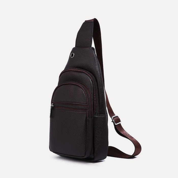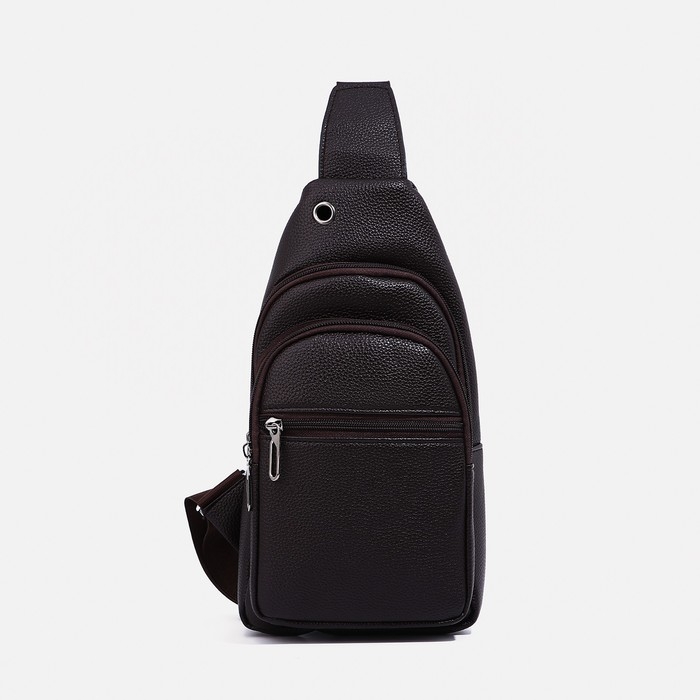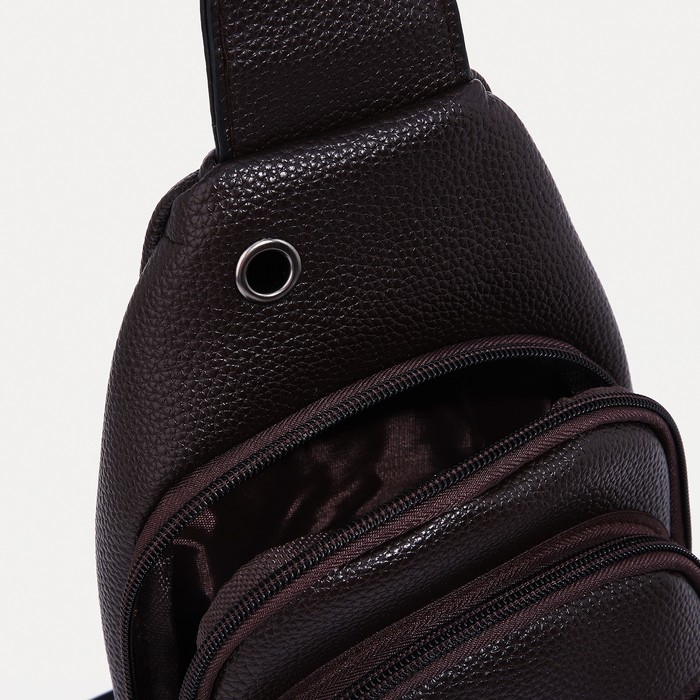 Сумка-слинг мужская, искусственная кожа, отверстие для наушников, цвет коричневый