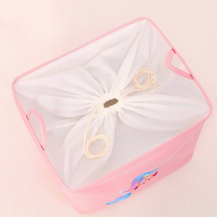 Корзина для хранения игрушкек с затяжкой на веревке, 40 х 50 х 48 см, розовая